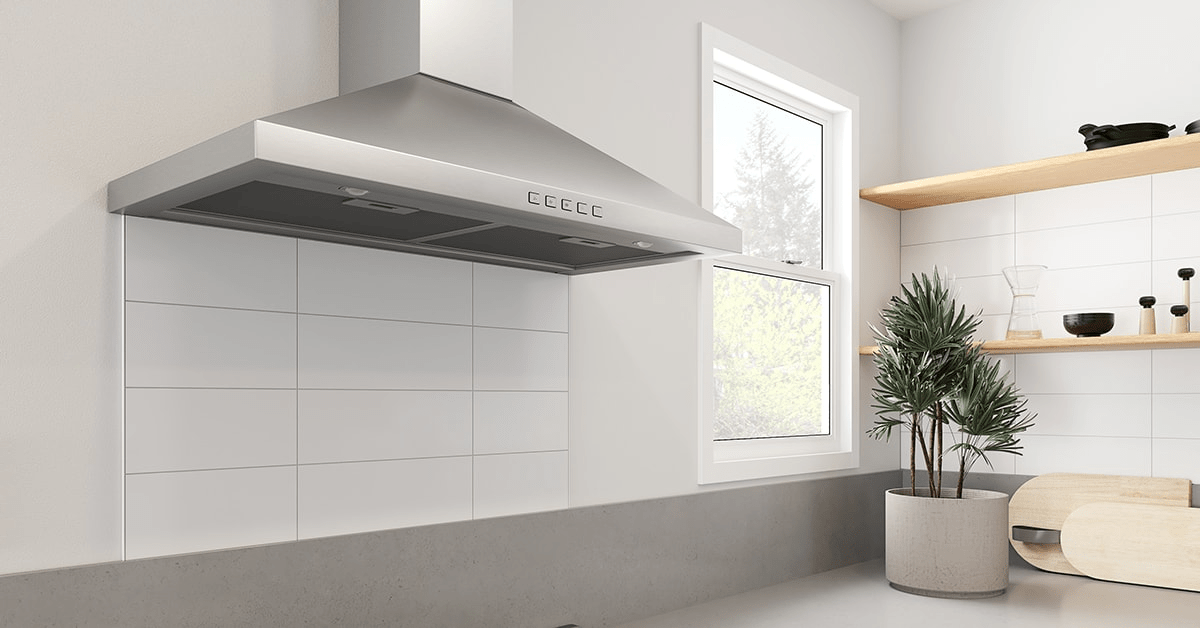 This type of hood eliminates foul air entirely by venting it outside the house through ductwork. Ducted hoods are highly favored and are regarded as the most efficient method of meeting ventilation standards outlined in the National Building Code of Canada.